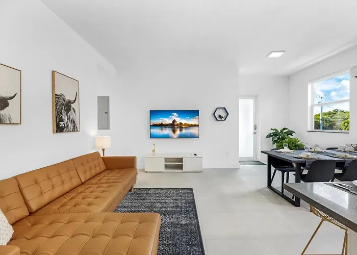 Het vakantiehuis is op circa 10-minuten rijafstand van de Bayside-markt en in de onmiddellijke nabijheid van Allapattah metrostation gesitueerd. Het One World Trade Center is gelegen binnen 4,1 km van de villa. De 5-slaapkamer Up To 12 Guests! Modern Villa Near Wynwood bevindt zich vrij dicht bij Club Tipico Dominicano.